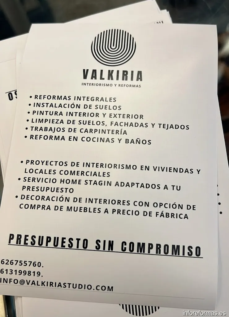 El horario podría no estar actualizado. Contacte con Valkiria - Reformas e Interiorismo para asegurarse.